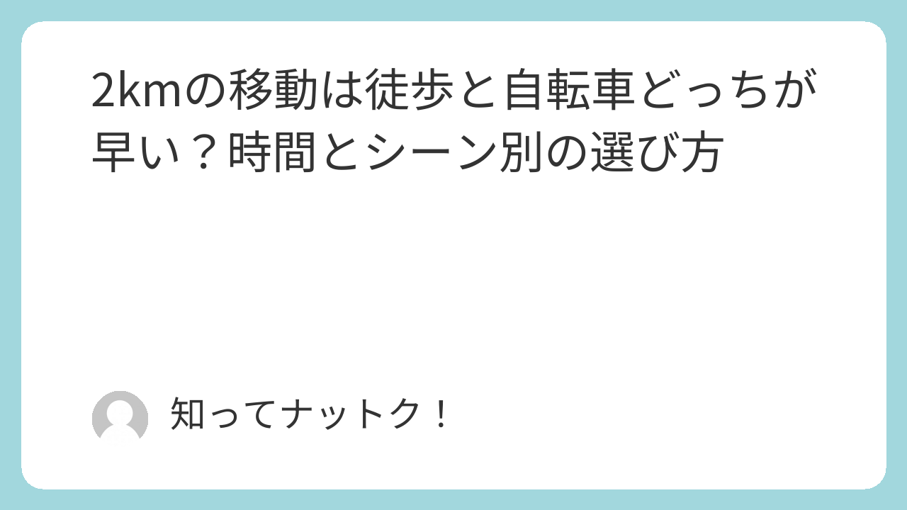 この記事では、2kmを歩く場合と自転車で移動する場合のおおよその時間の目安を、わかりやすく整理しています。