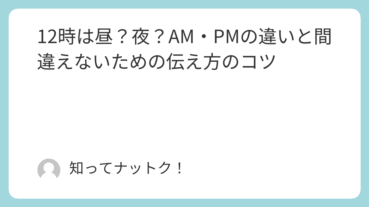 たとえば「AM12時に集合」と言われると、昼なのか夜なのか迷ってしまうことがありますよね。