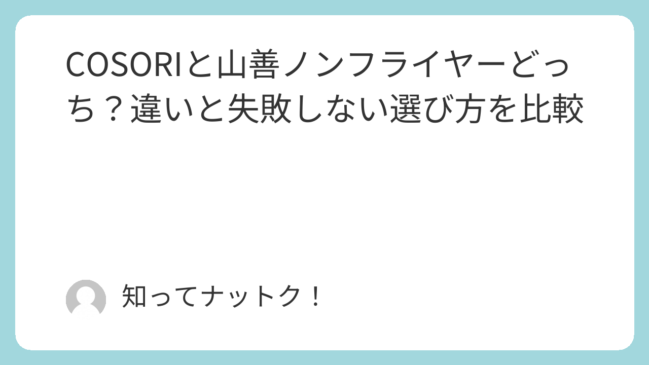 この記事では、COSORIと山善ノンフライヤーの違いを分かりやすく整理しながら、それぞれの特徴や選び方のポイントをまとめています。