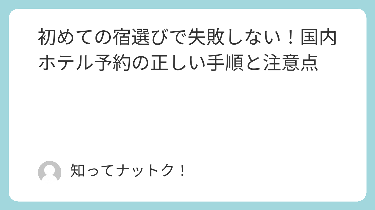 国内ホテルの予約は、慣れていないと情報が多くて迷ってしまうものです。