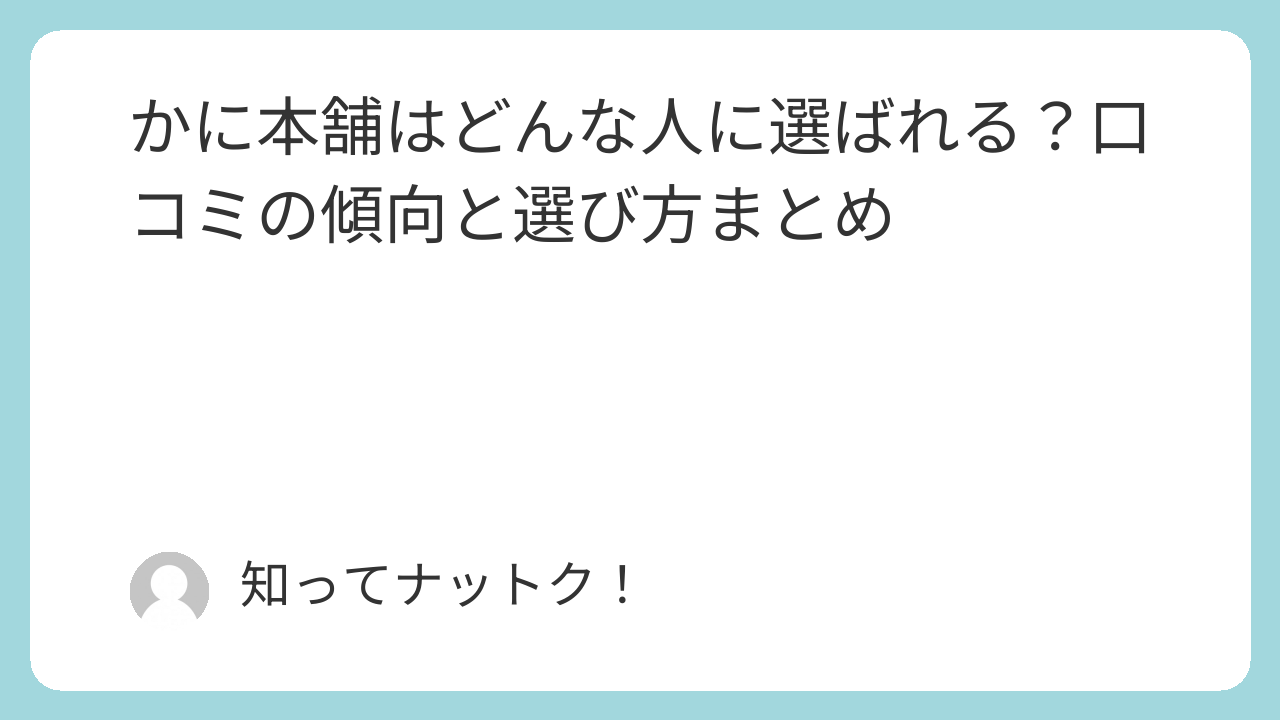 かに本舗の商品を検討されている方の、迷いを整理する手助けになれば嬉しいです。