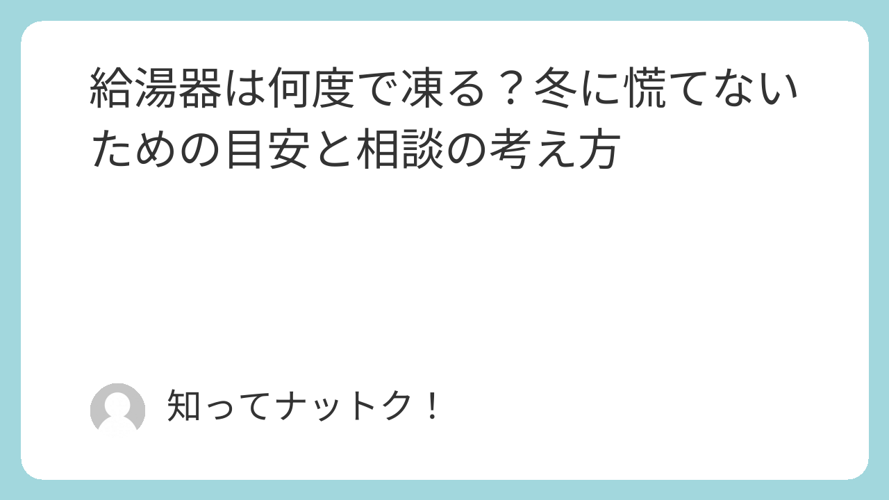 この記事では、給湯器が凍結しやすくなる温度の考え方や、住まいの環境によって気をつけたいポイントを分かりやすく整理しています。
