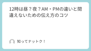 12時は昼?夜?AM・PMの違いをやさしく整理。正午と深夜0時の表し方、24時間制への置き換え、テキスト連絡での伝え方まで短時間で確認。家事や仕事の予定共有に役立つ実用ガイドです。