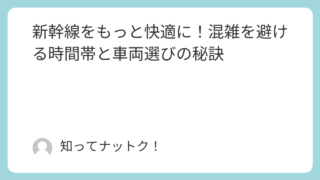 新幹線での移動は、時間を効率的に使える便利な手段ですが、混雑する時間帯や車両を選んでしまうと、せっかくの快適な旅がストレスに変わることもあります。実は少しの工夫で新幹線の混雑を回避し、快適に過ごす方法があります♪本記事では、混雑を避け、すい...
