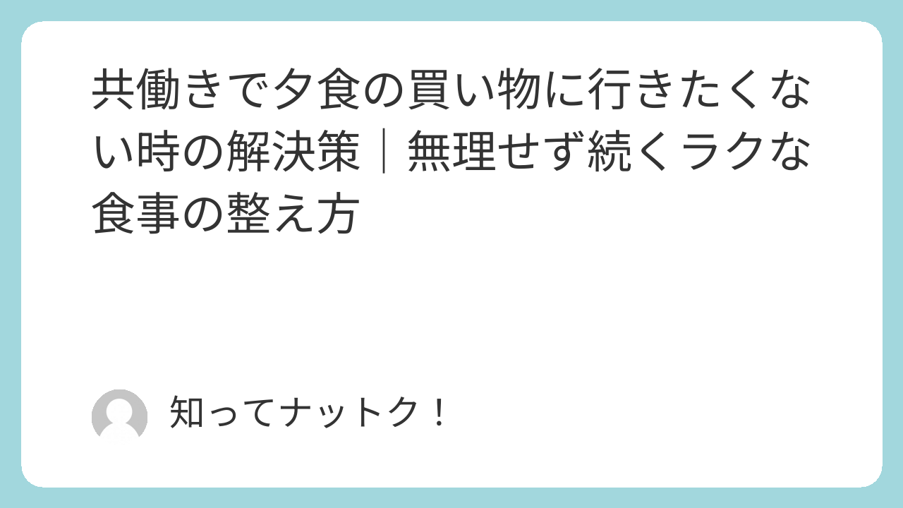 「共働き 夕食 買い物 行きたくない 解決策」と検索している方に向けて、この記事では、夕食づくりがしんどくなりやすい理由と、平日のご飯づくりをラクにする方法を分かりやすく整理しました。