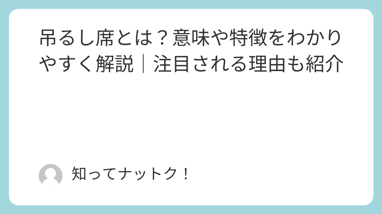 「吊るし席」という言葉を聞いたことがあっても、具体的にどんな席なのかはあまり知られていないかもしれません。
