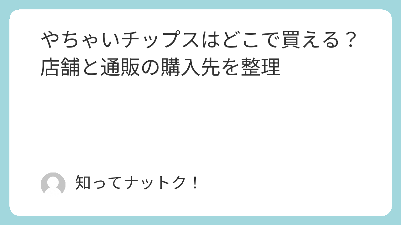 この記事では、やちゃいチップスについてどこで買えるのかを軸に、実店舗とネット通販それぞれの購入先を分かりやすく整理しています。