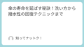 - 予防は紫外線対策・日陰保管・日常の軽い清掃が基本。環境面では必要量の使用と希釈排水を心がける。