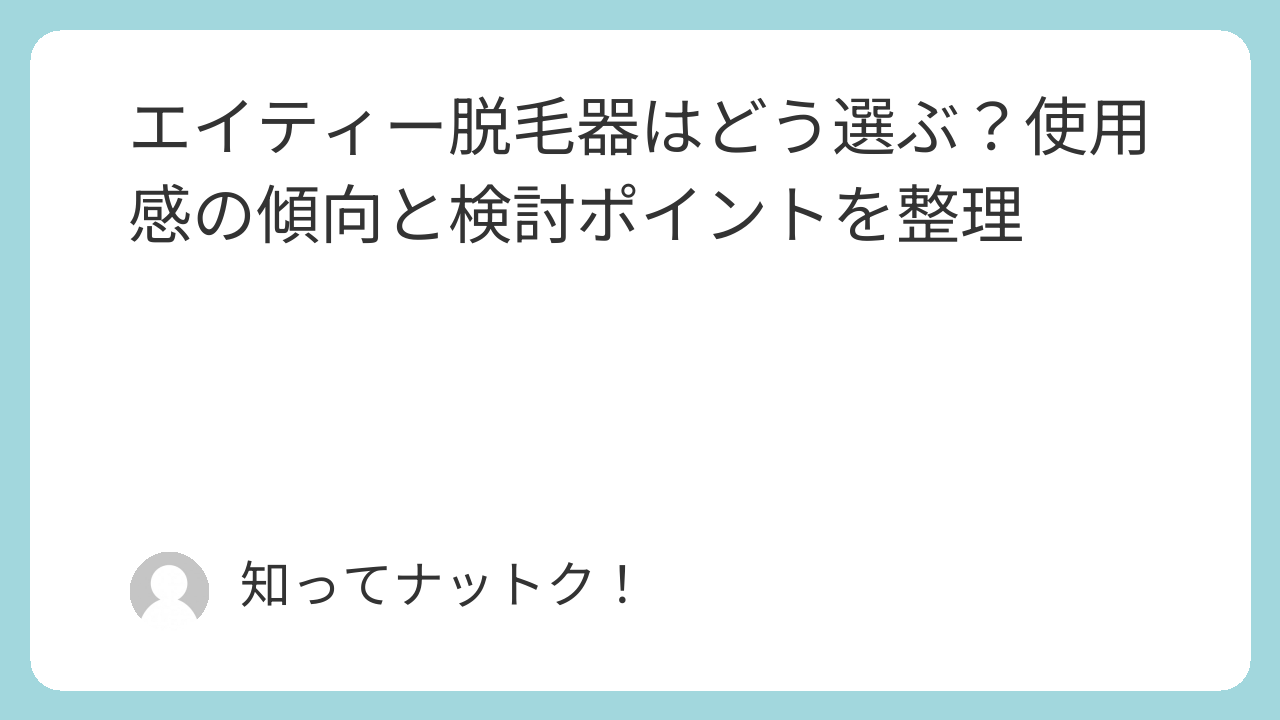 この記事では、エイティー脱毛器について、ネット上で語られている使用感の傾向や、検討する際に確認しておきたいポイントを分かりやすく整理しています。
